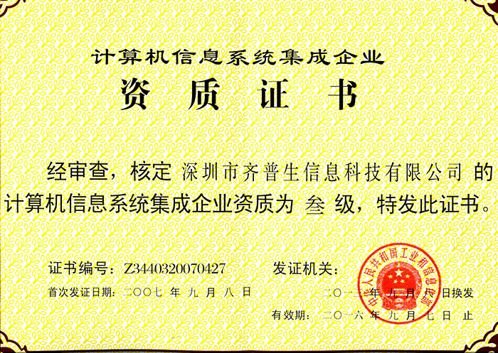 計算機信息系統(tǒng)集成企業(yè)資質(zhì)證書(三級)